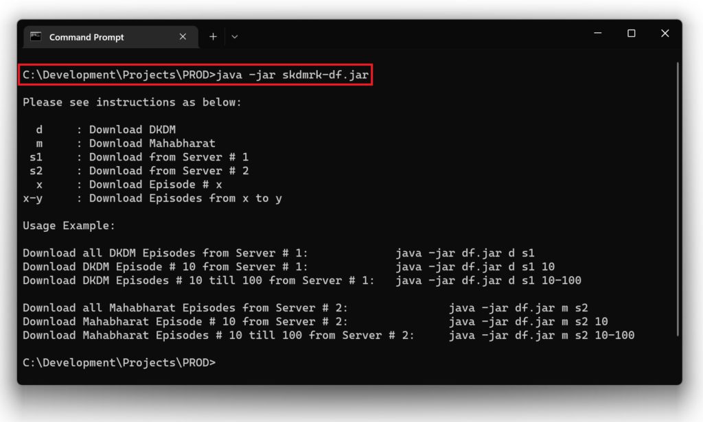 Download all MB Episodes from Server # 1: java -jar df.jar m s1