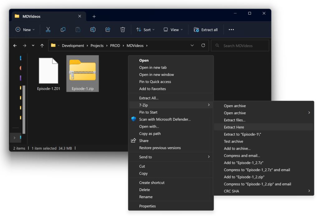 If you see any downloaded file with extension as .Z01, .Z02 and so on, then don't worry, look for a file with same name but ending with .zip extension. Right click on it and select "Extract Here", as below: