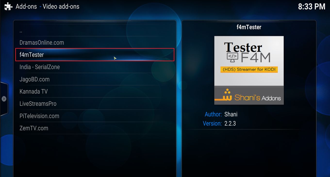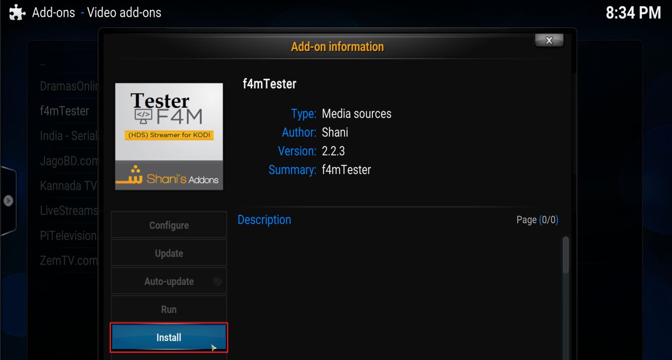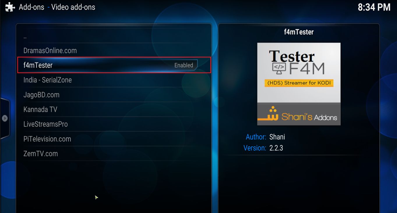 12. Before you install "Zem TV", you will need to install "f4mTester" as a pre-requisite.