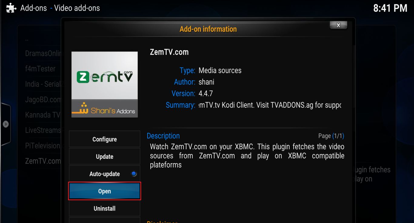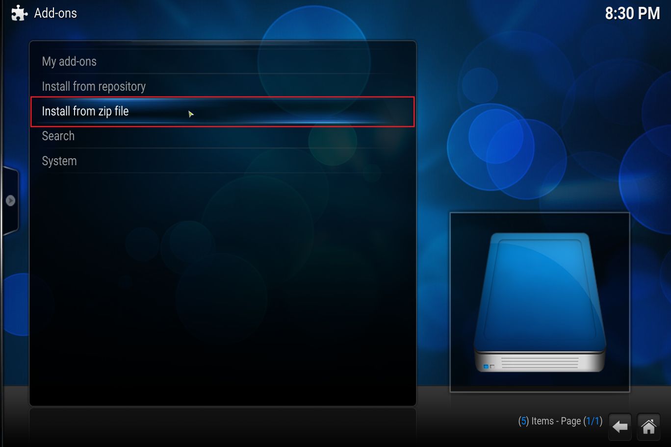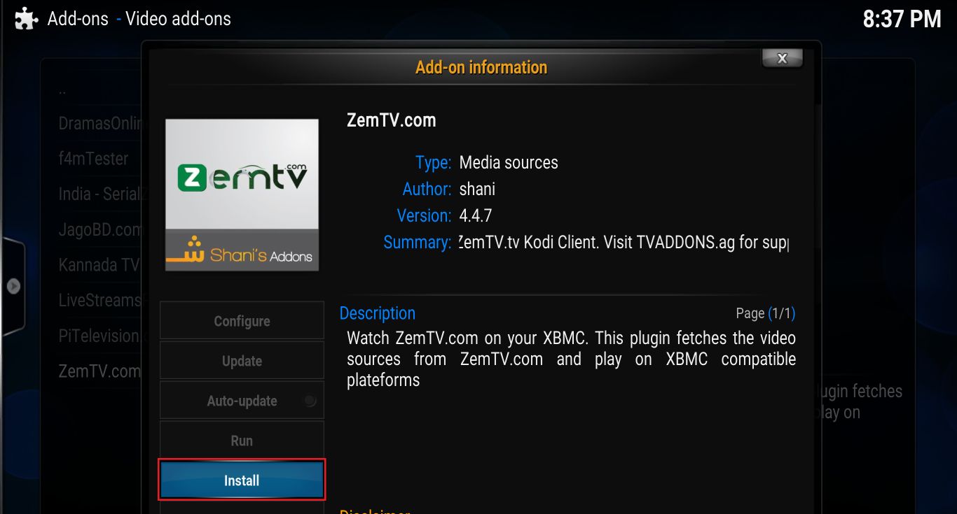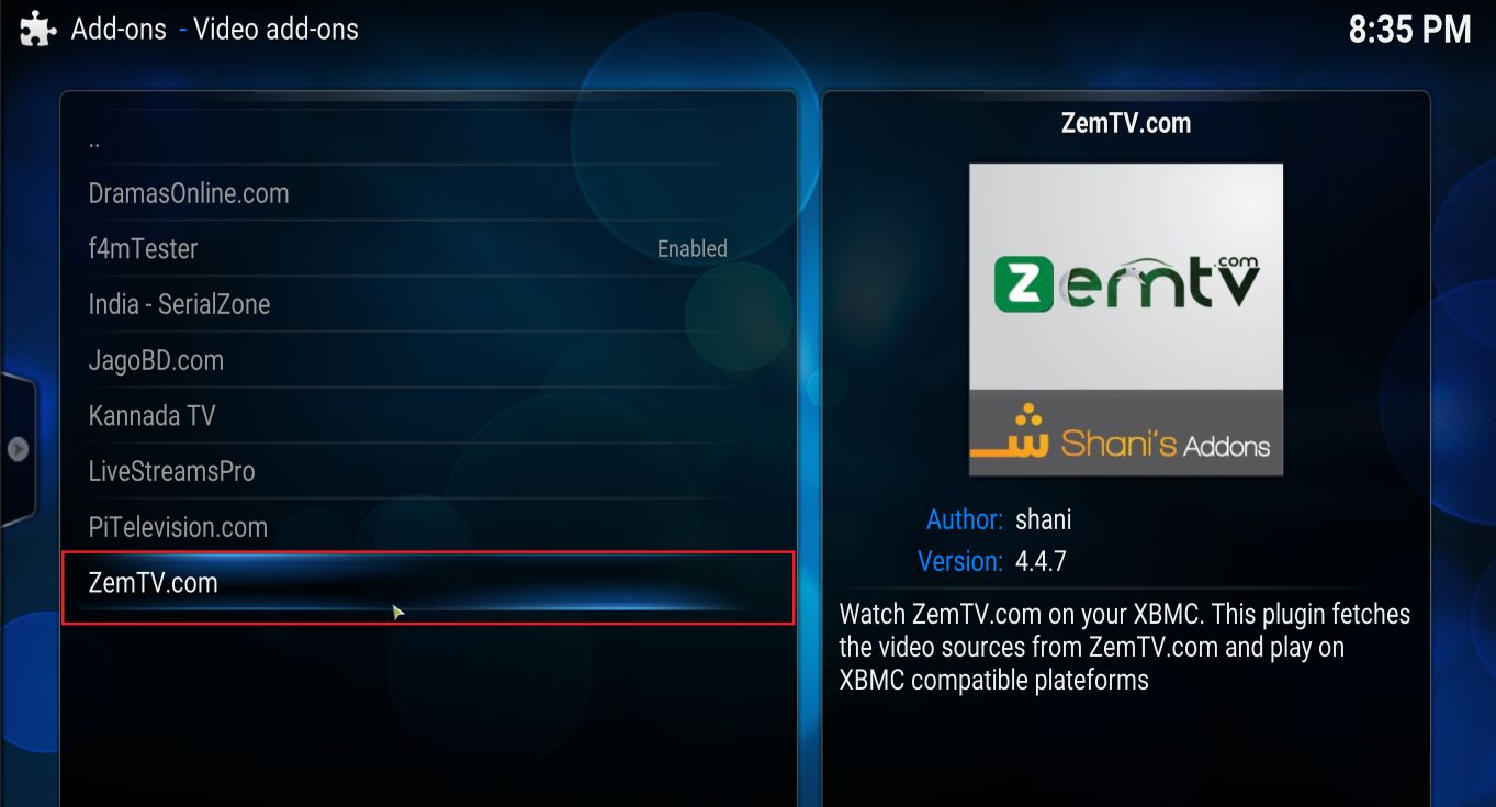 Then follow the below steps to install the Zem TV Add On, provided by Shani (original credits & thanks to him for developing this Add On):1. Launch Kodi and select Videos > Add-ons