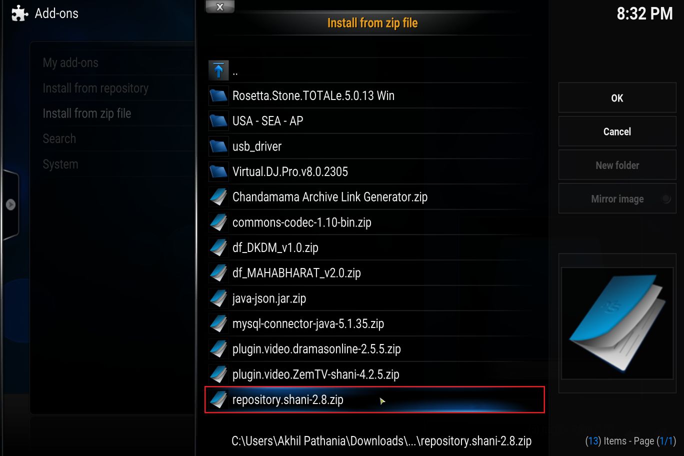 7. Browse to the folder where you had downloaded the .zip file and select it.